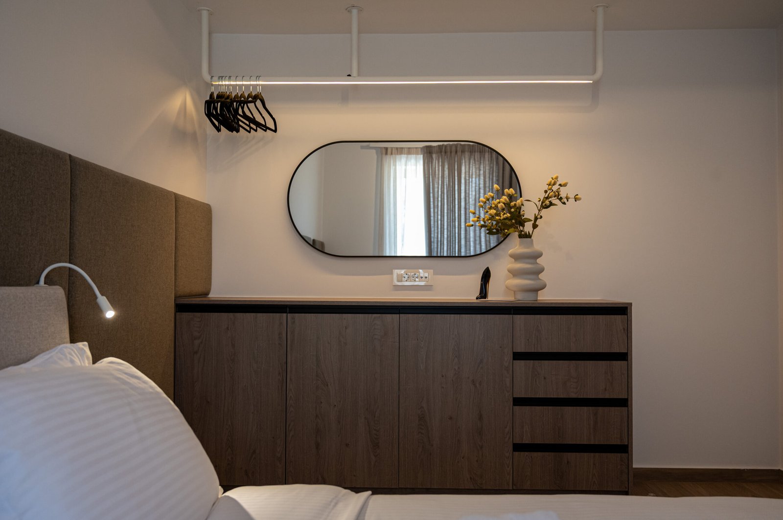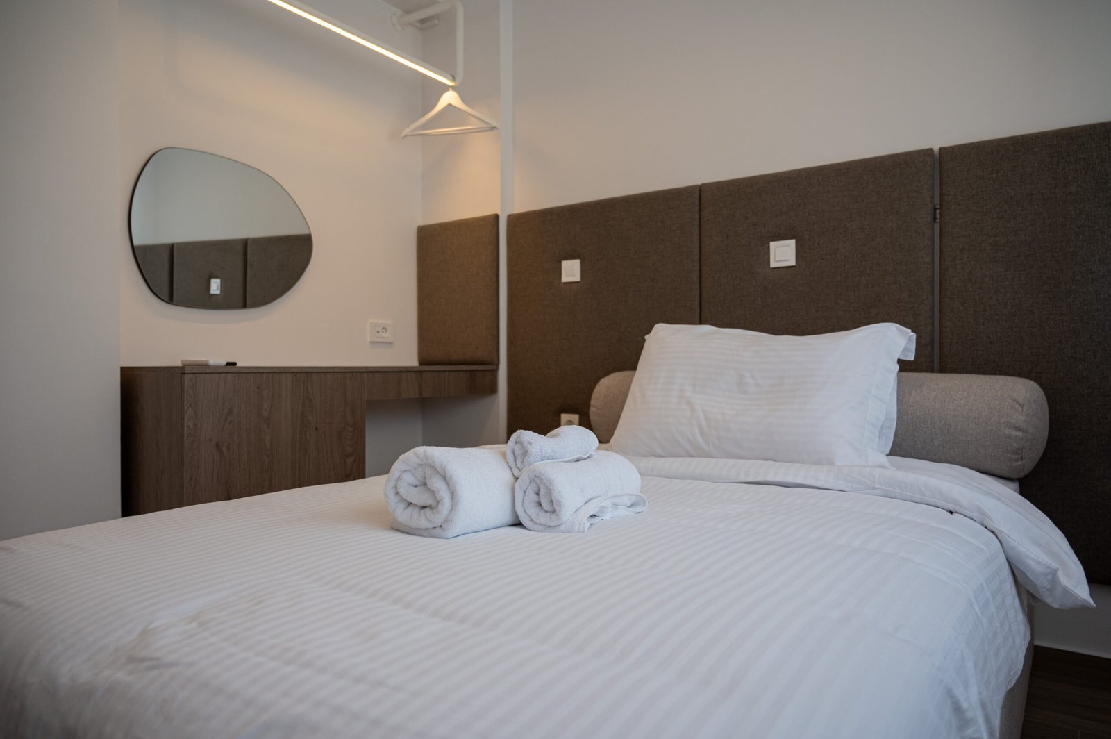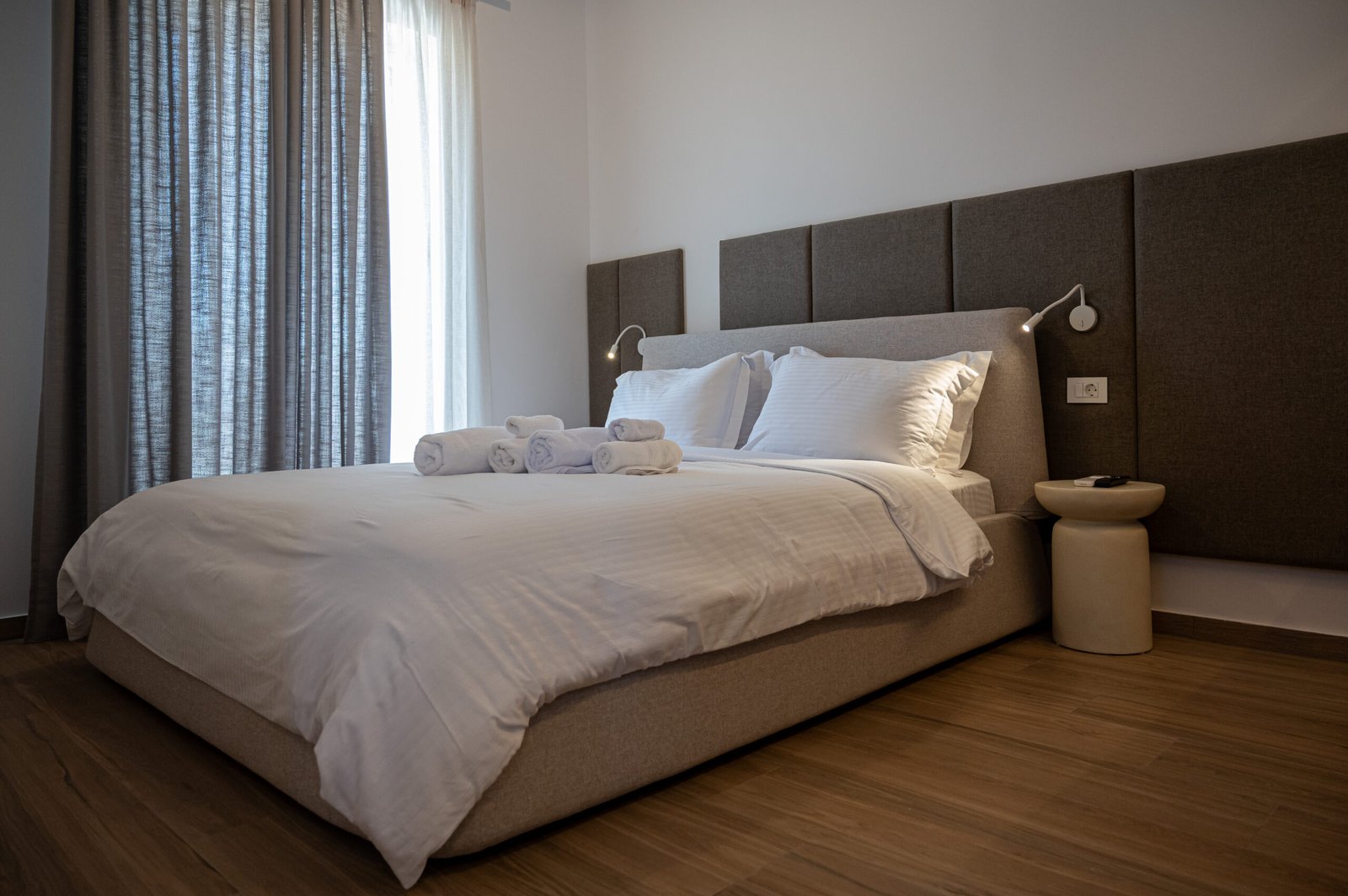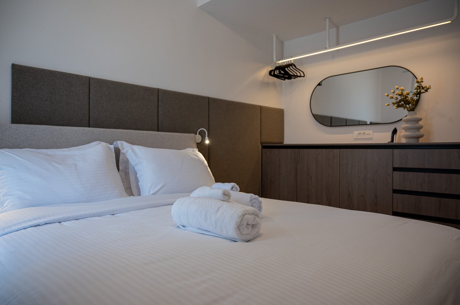 Spacious double bedroom with a private balcony. Includes a double bed, large wardrobe, bedside tables, and plenty of natural light.