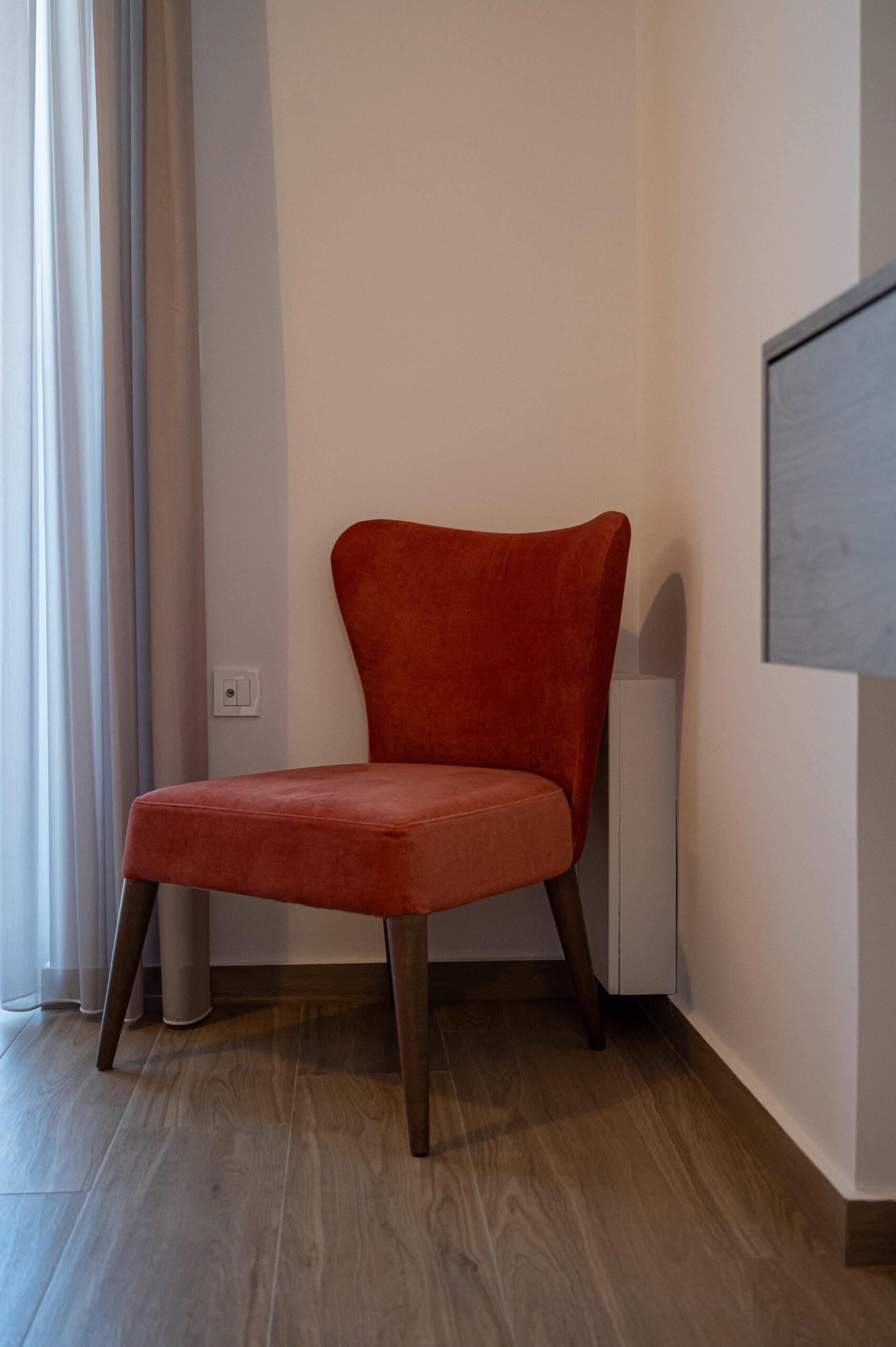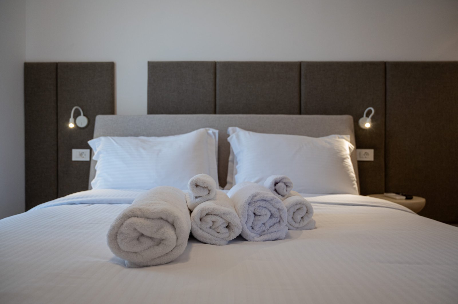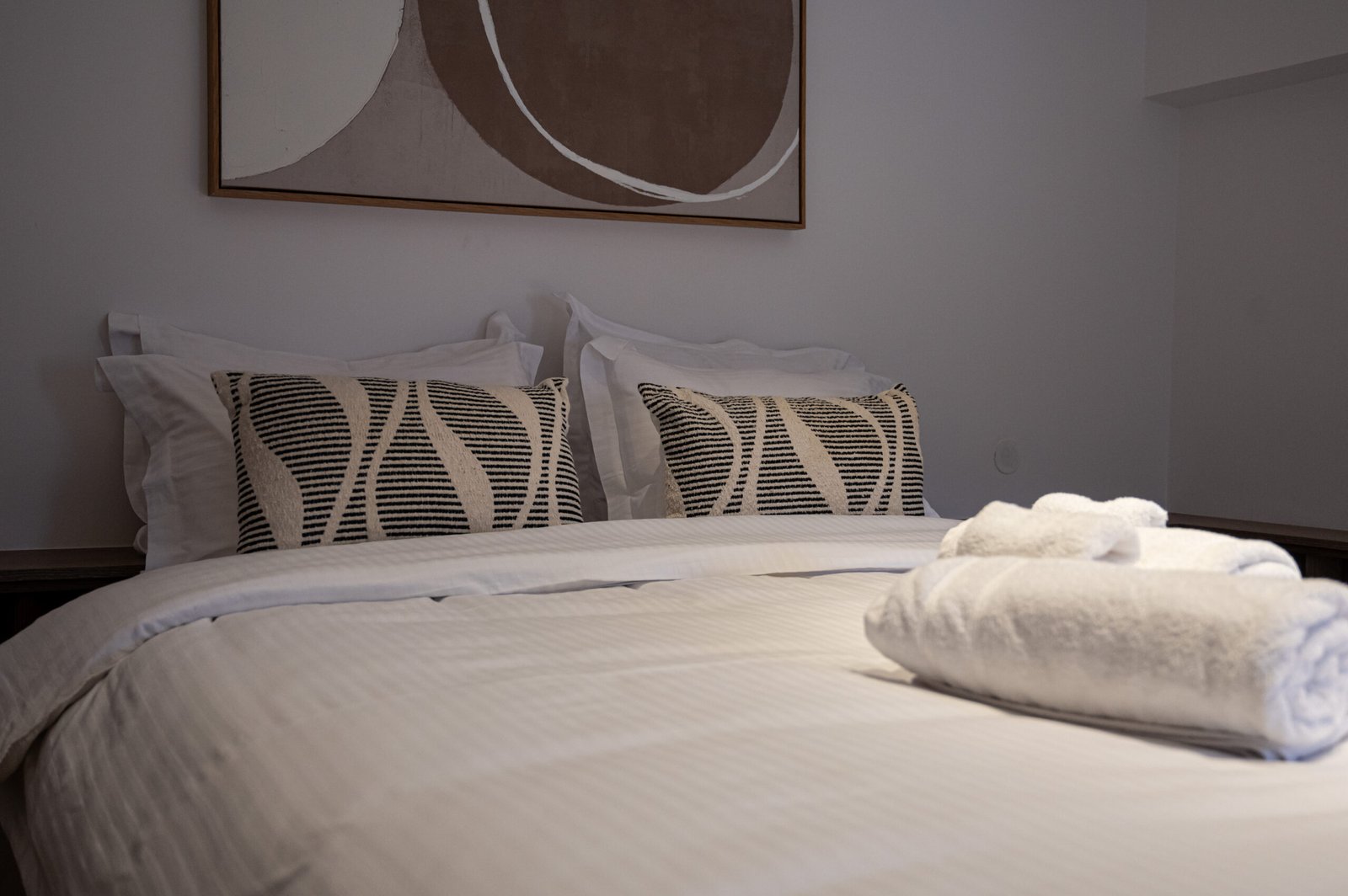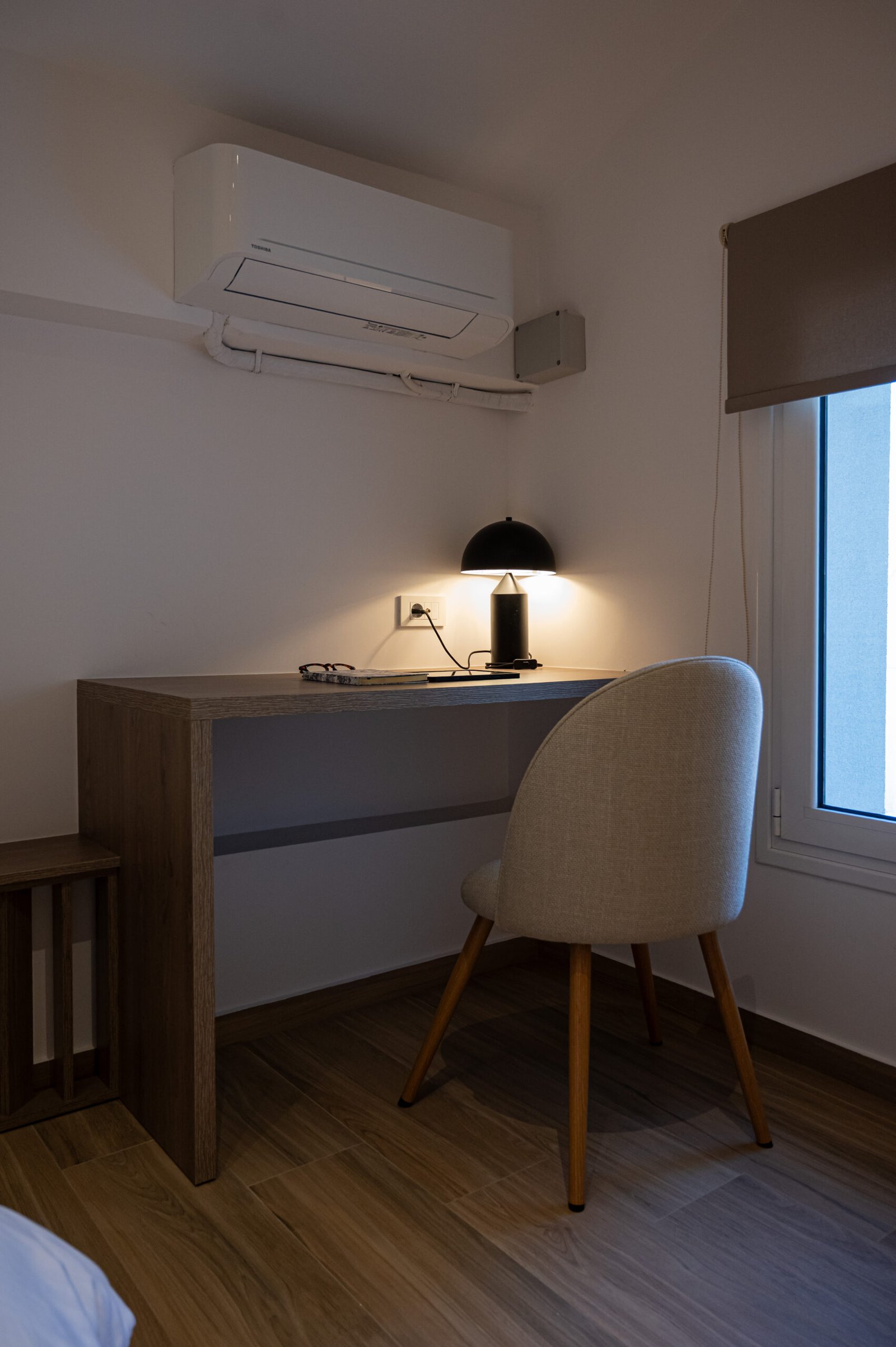 Spacious double bedroom with a private balcony. Includes a double bed, large wardrobe, bedside tables, and plenty of natural light.